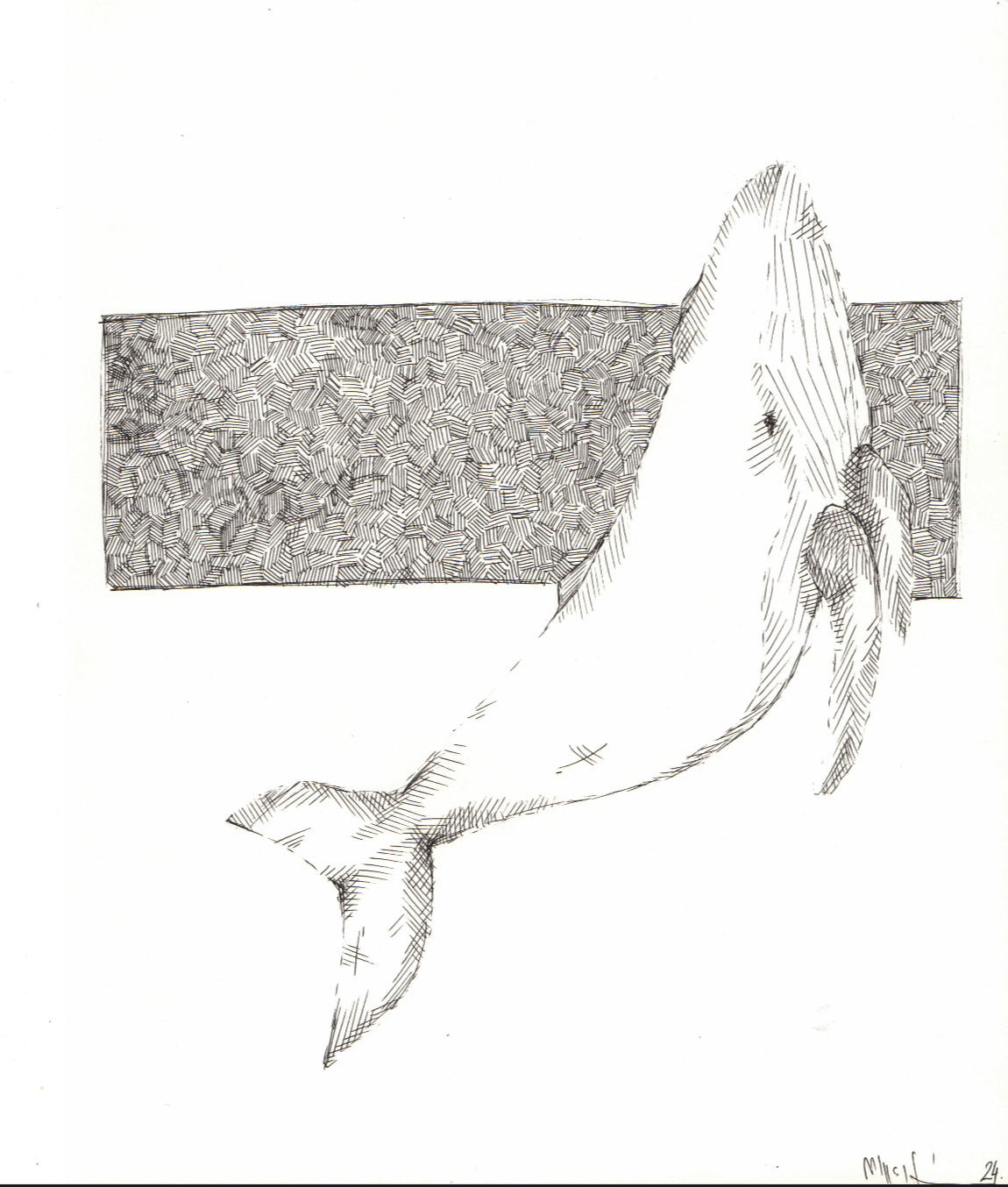Ez a minimalista bálna vonalrajz a természet erejét és nyugalmát ragadja meg visszafogott, mégis karakteres formában. A kézzel készült grafika finom, metszetszerű vonalvezetéssel ábrázolja a bálnát, amely dinamikusan metszi a geometrikus, strukturált hátteret. A kompozíció egyszerre organikus és szabályos, így harmonikusan illeszkedik modern, skandináv vagy kortárs enteriőrökbe.